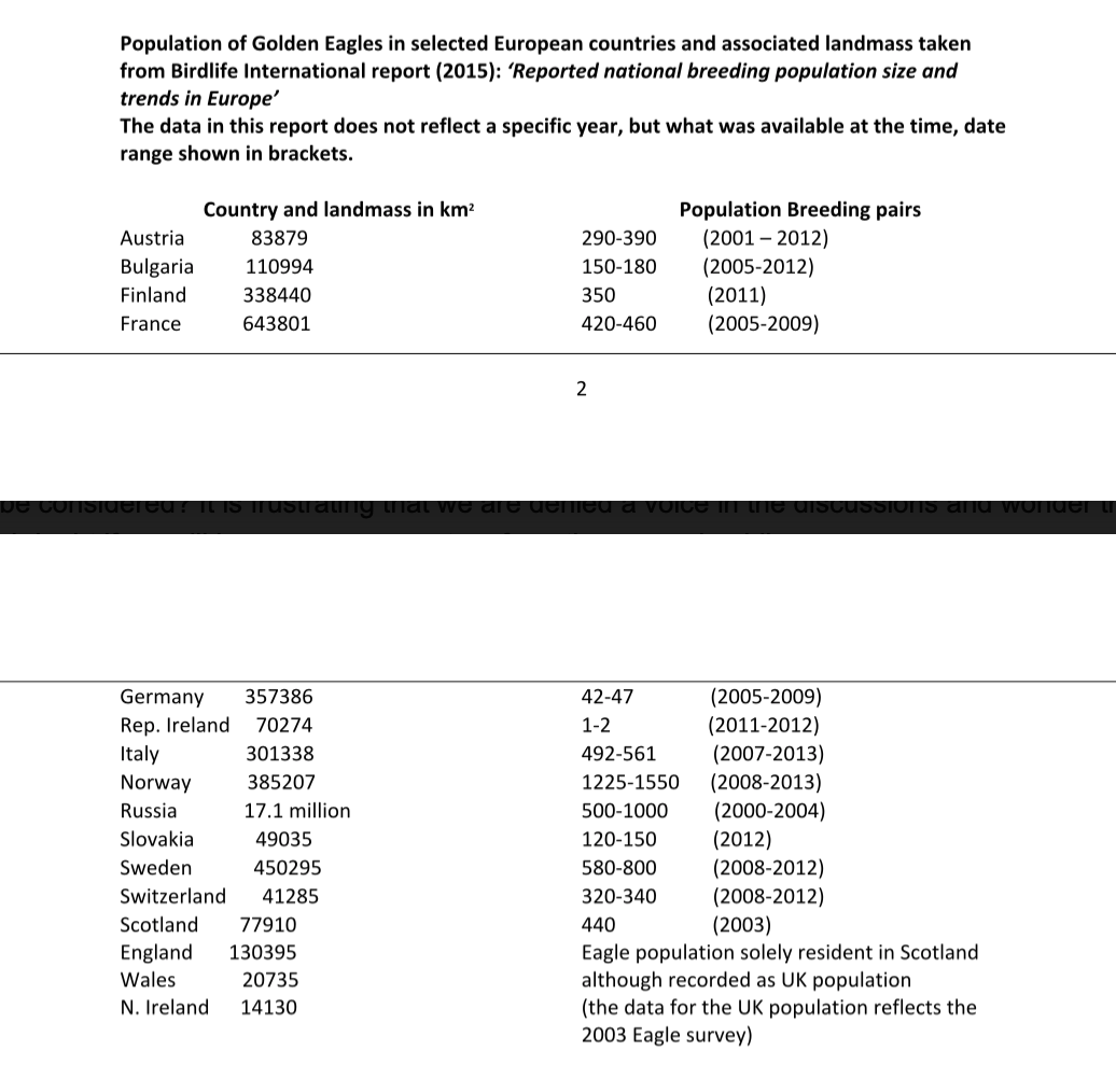 Indeed, Scotland’s Golden Eagle population could be read as being - comparatively- better than the country with the highest recorded Golden Eagle population in Europe, in the Birdlife International Report of 2015.